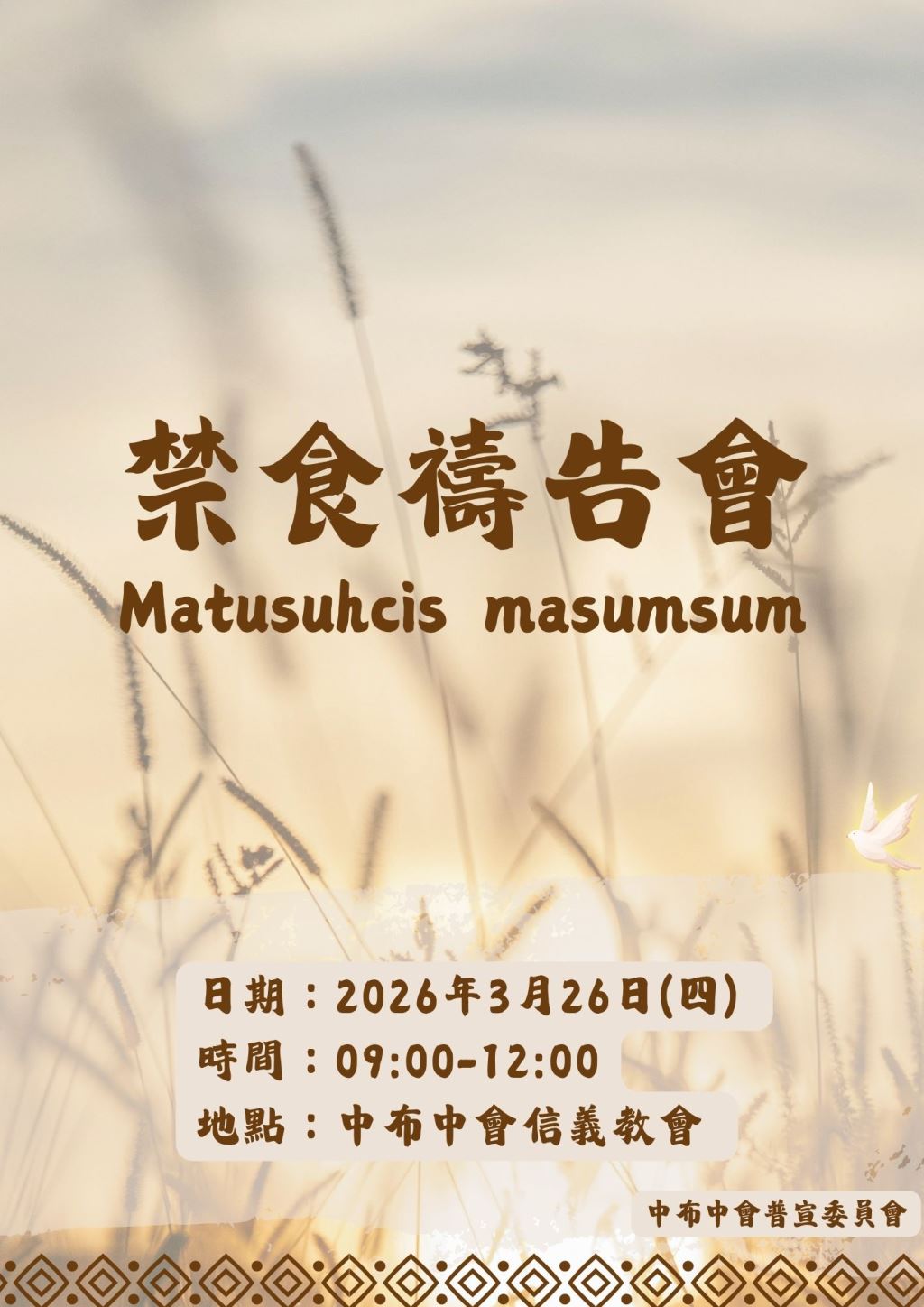 【中布中會禁食禱告會】 時間:2026年03月26日(四)09:00-12:0於信義教會